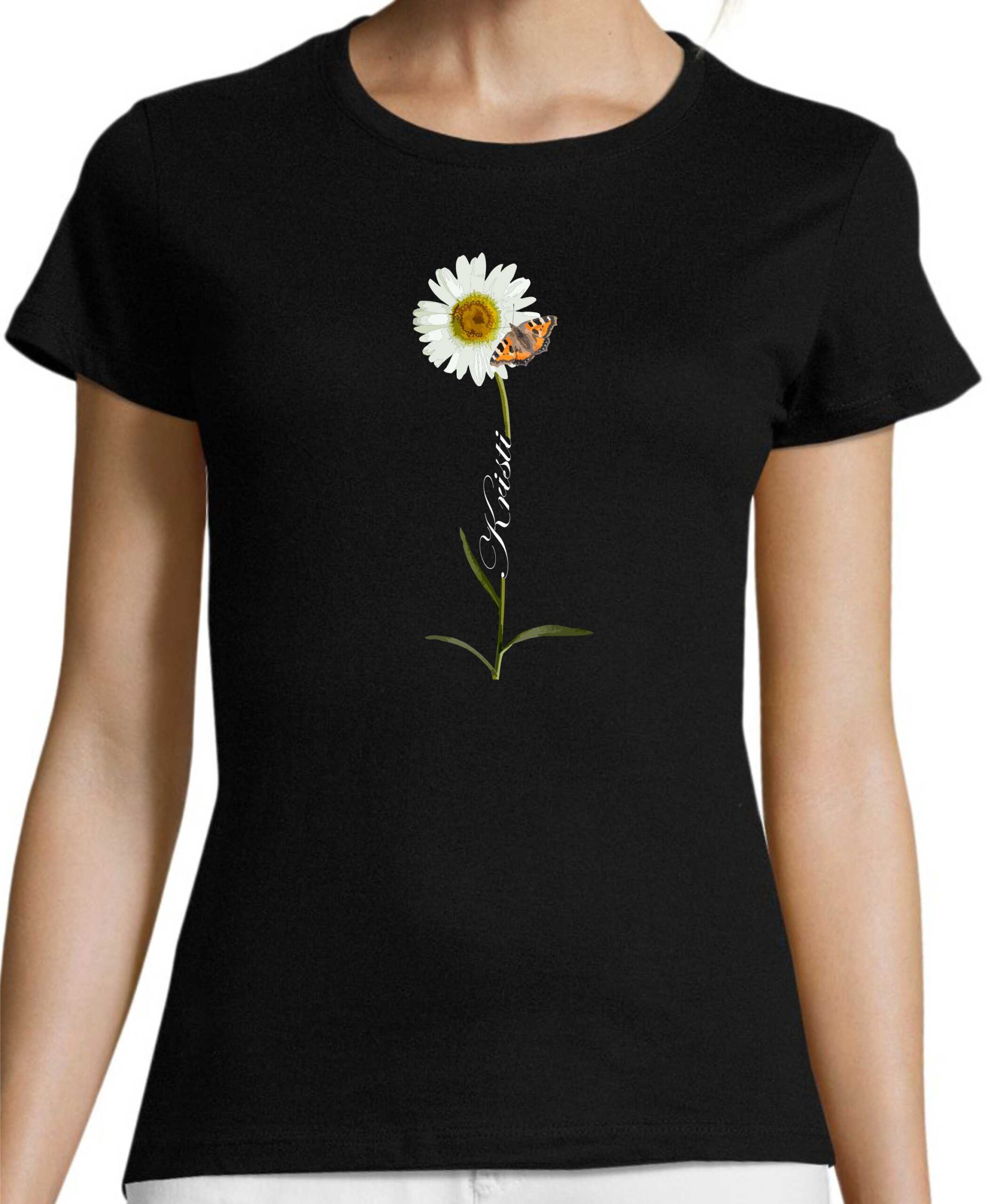 Karikakar liblikas + SINU nimi / Naiste T-särk – must